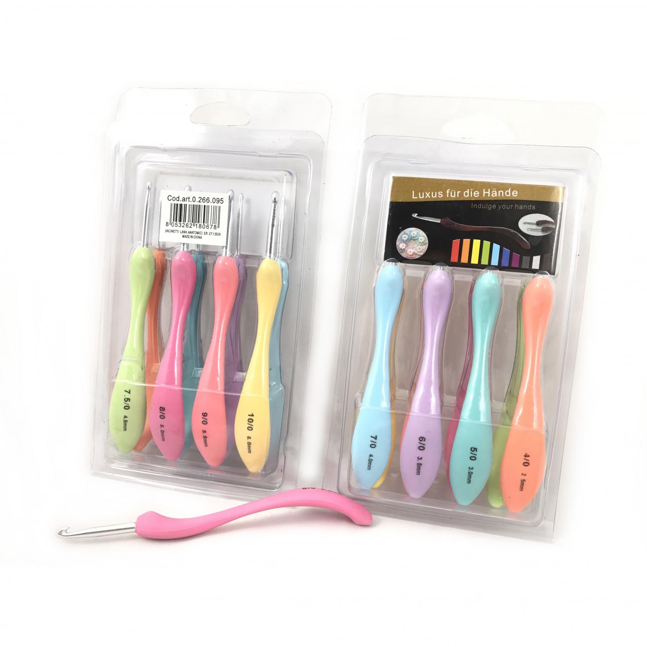Uncinetti ergonomici: progettati per ridurre l’affaticamento della mano durante lunghe sessioni di lavoro. Questi modelli sono particolarmente consigliati per chi lavora per ore in continuazione.