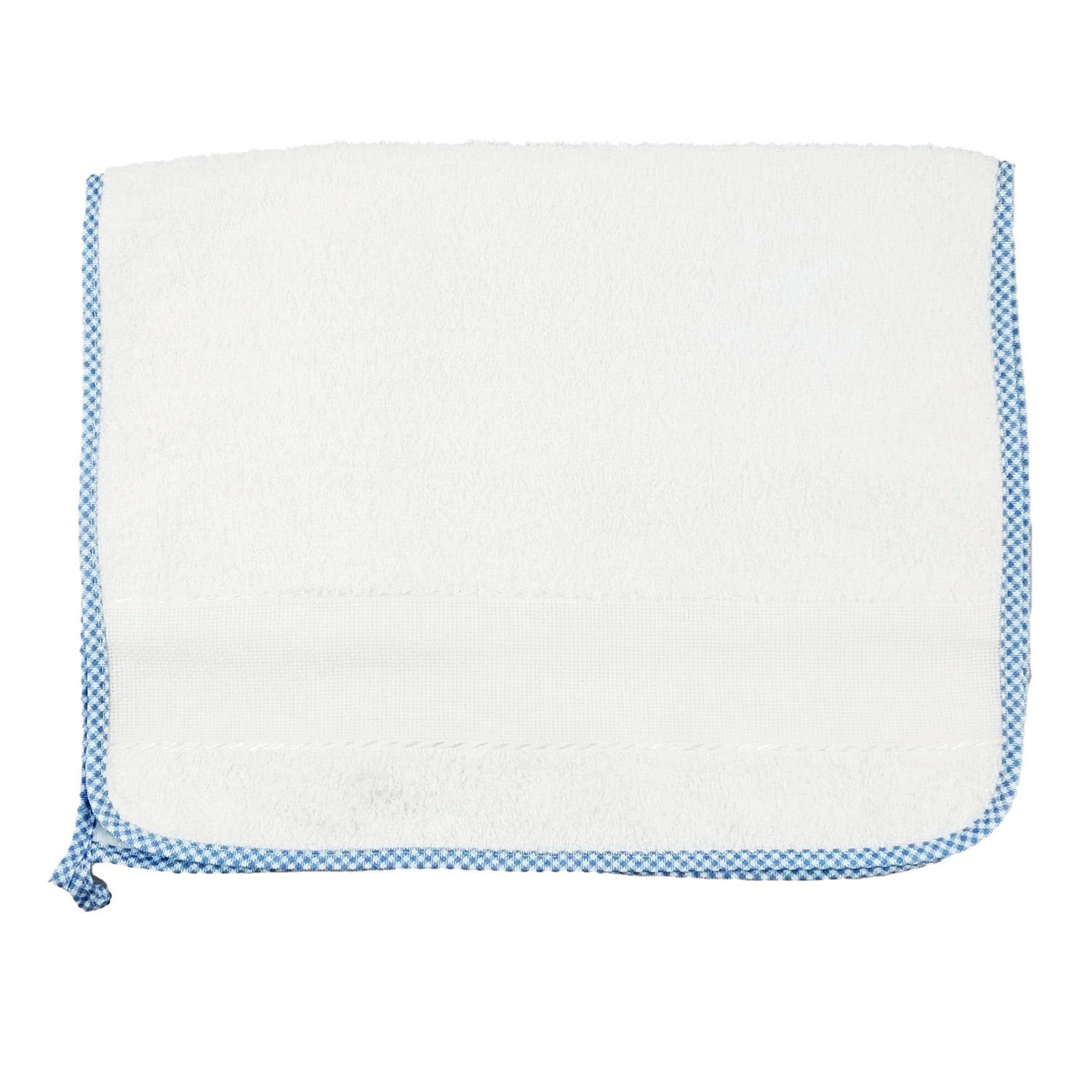 Asciugamano per Asilo con bordo in tela aida da ricamare, con gancetto per poterlo appendere. Disponinibile in 9 varianti colore AZZURRO – ROSA – TURCHESE – BLU – ROSSO – GIALLO – ARANCIONE – LILLA – VERDE