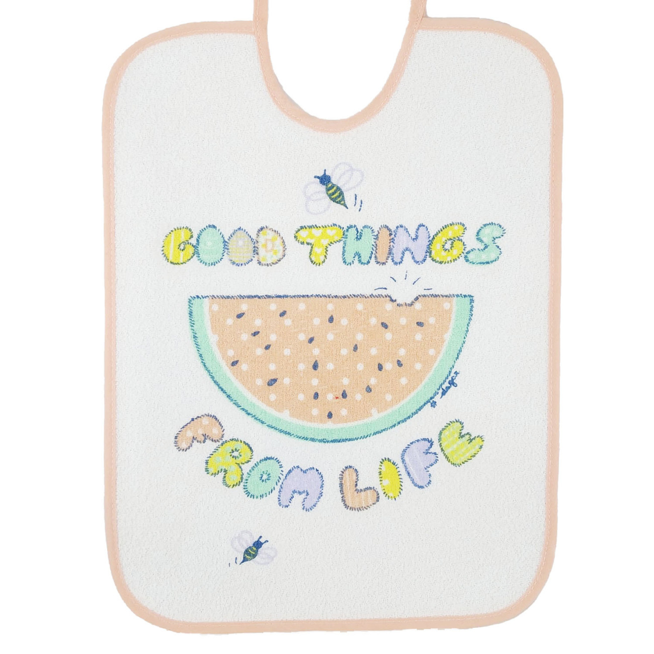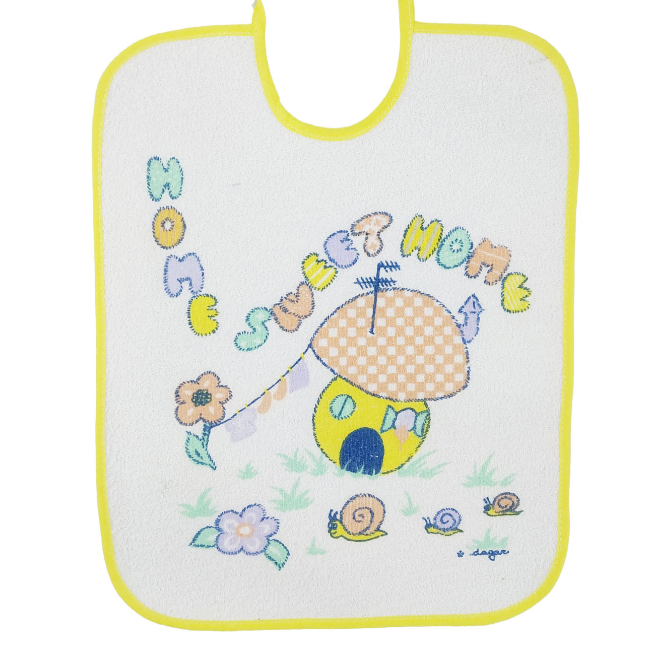 Bavaglini grandi in cerata impermeabile , con lacci e disegnati.