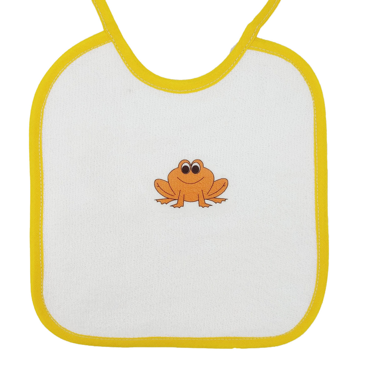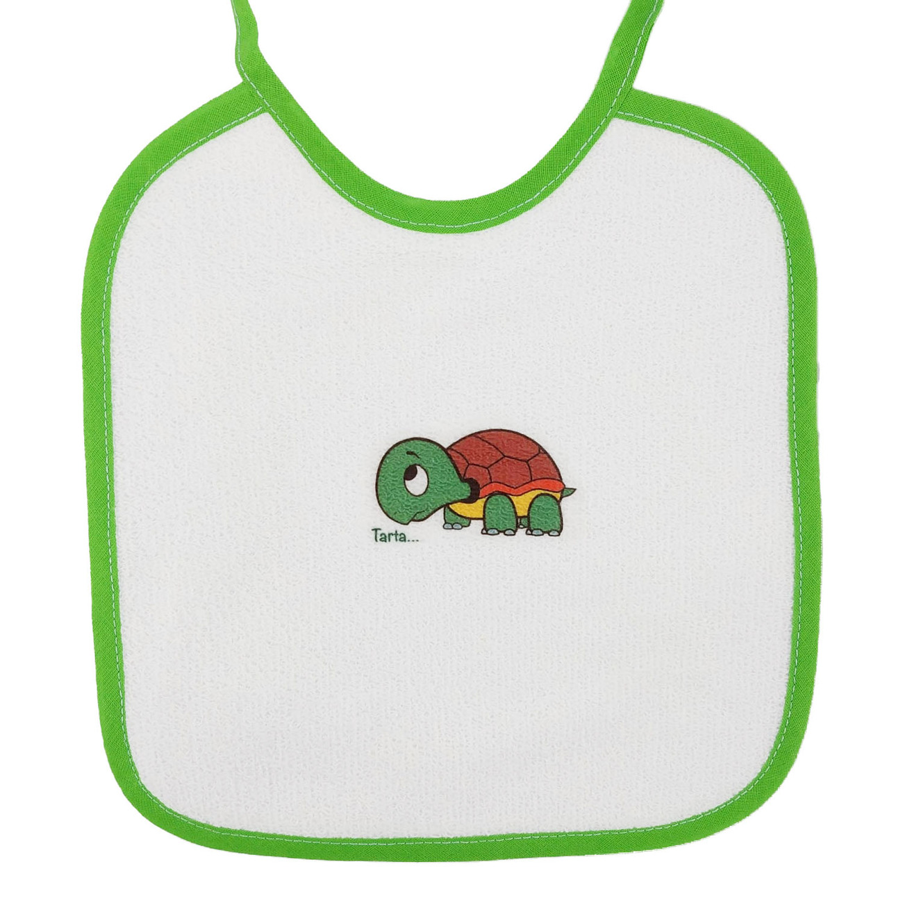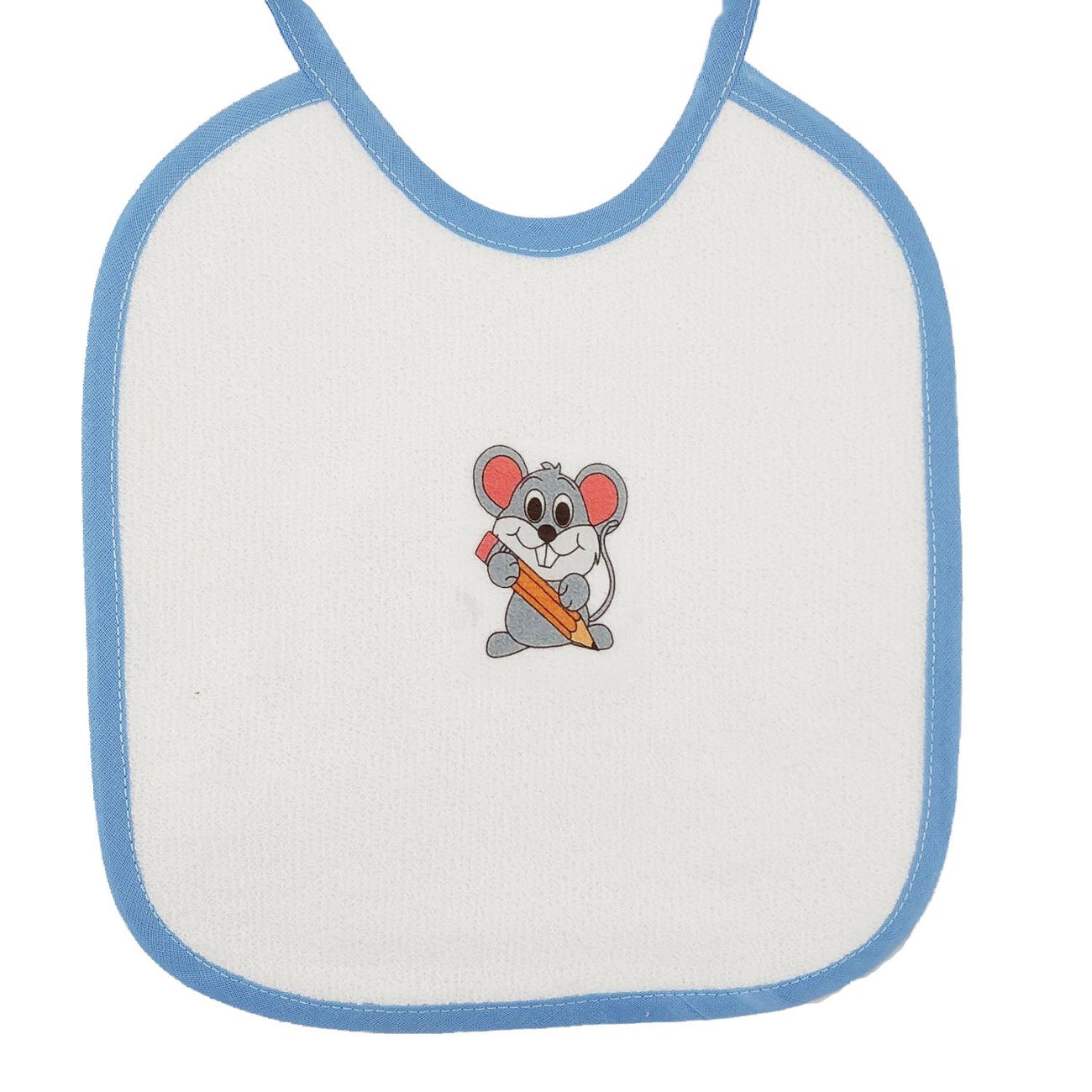 Bavaglini piccoli in cerata impermeabile , con lacci e con disegni vari .