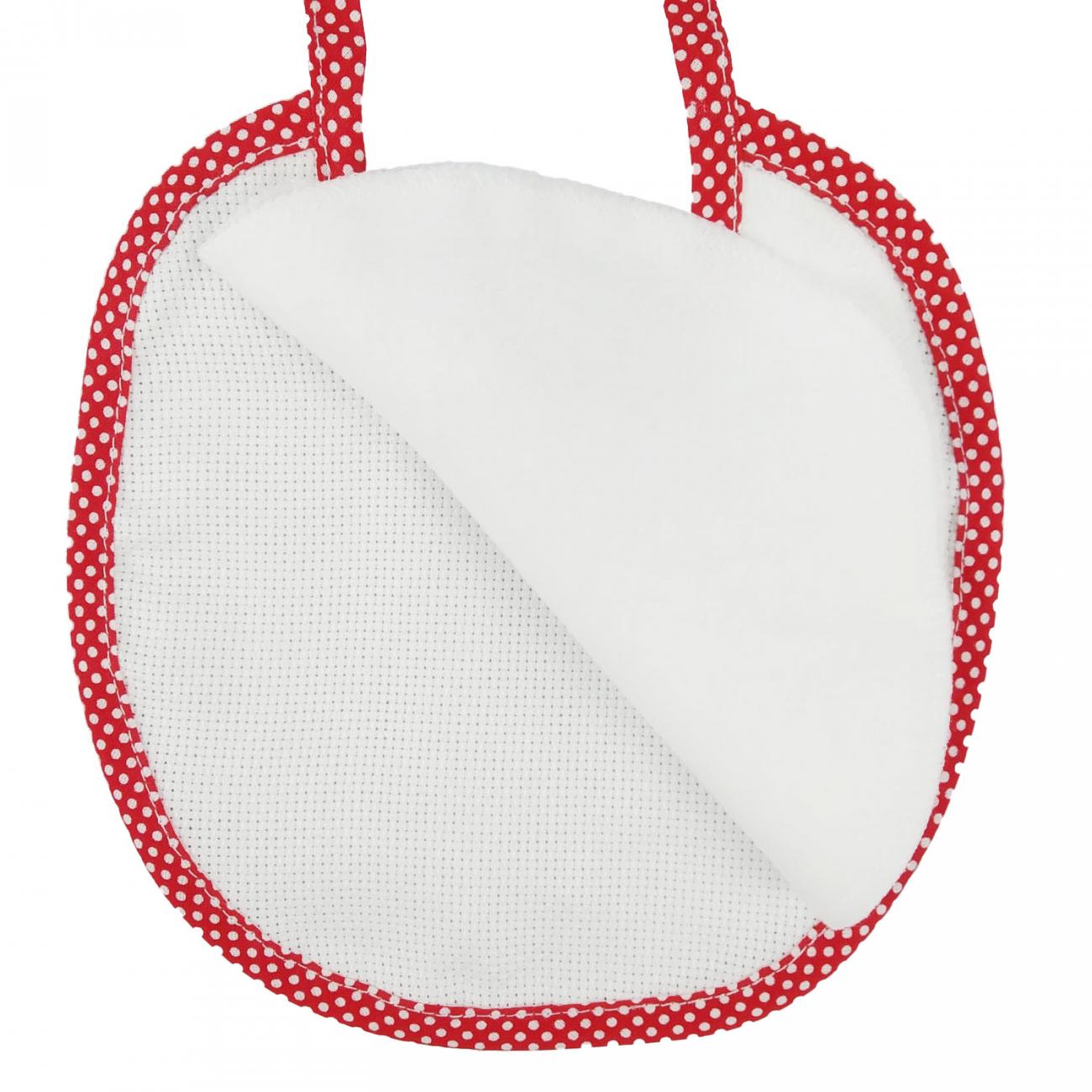 Bavaglino in Tela Ida tutto da ricamare con Lacci , bordato con sbieco a POIS ROSSO .