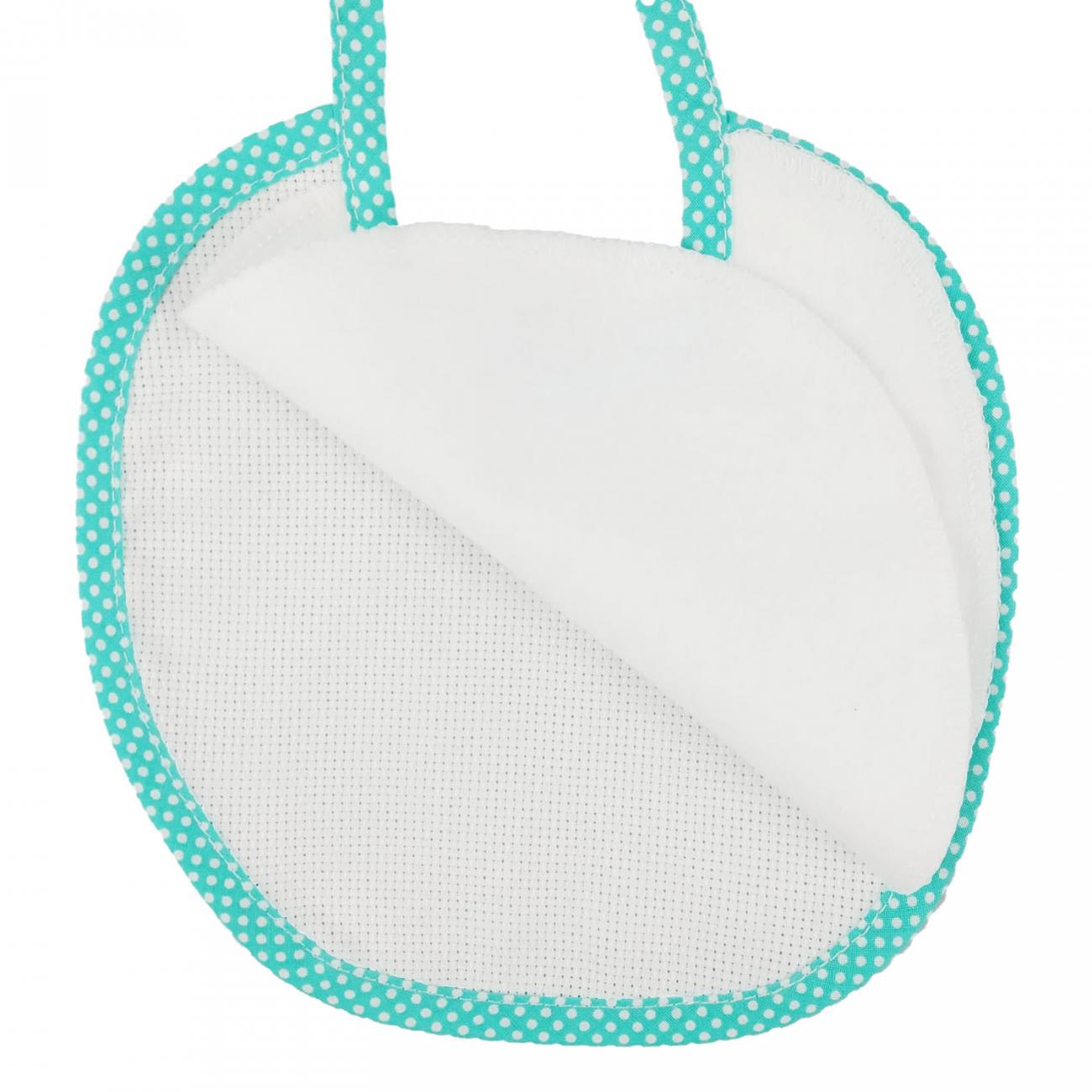 Bavaglino in Tela Ida tutto da ricamare con Lacci , bordato con sbieco a POIS VERDINO .