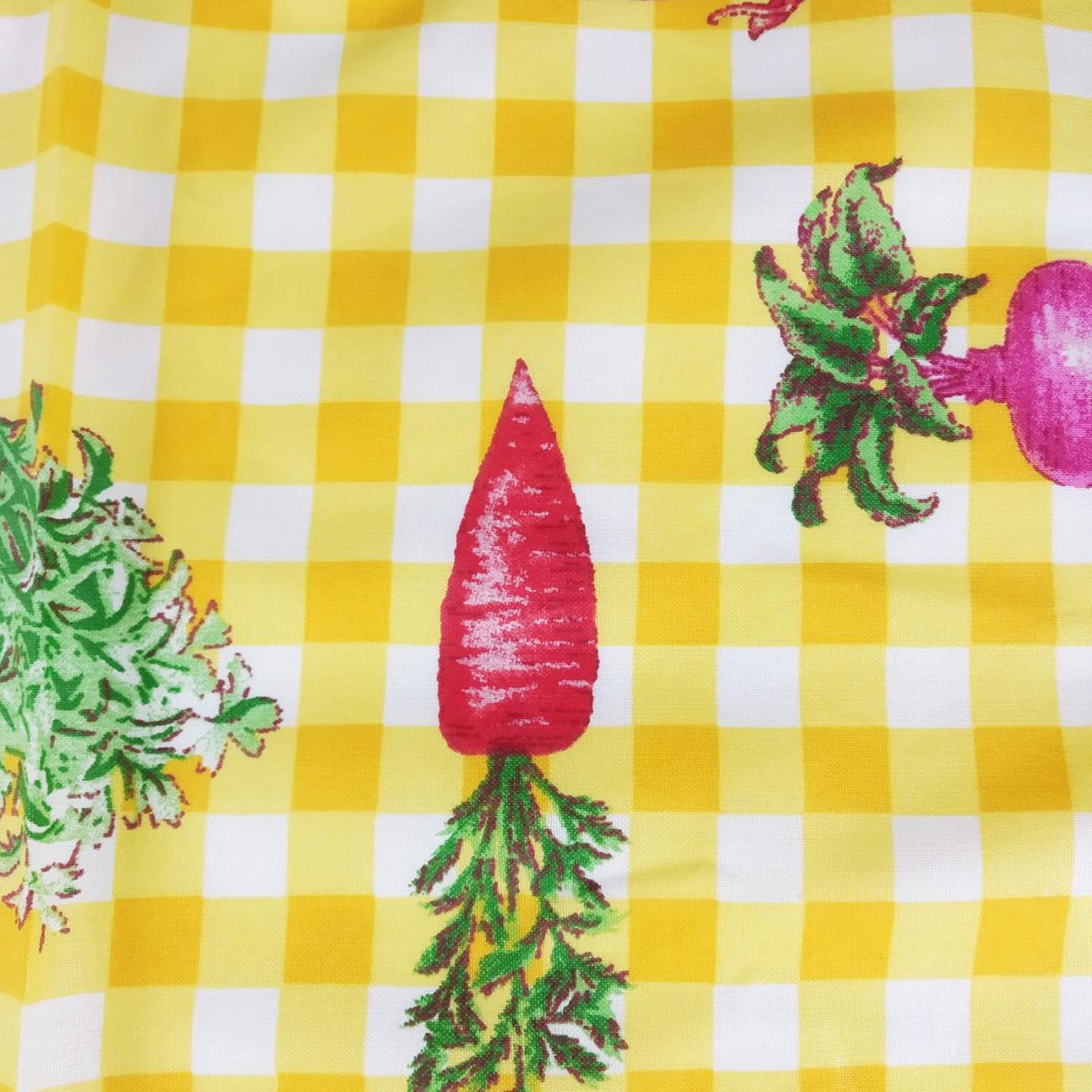 Grembiule vita senza pettorina , in tessuto di cotone a quadretti gialli con disegni 100% cotone MADE IN ITALY