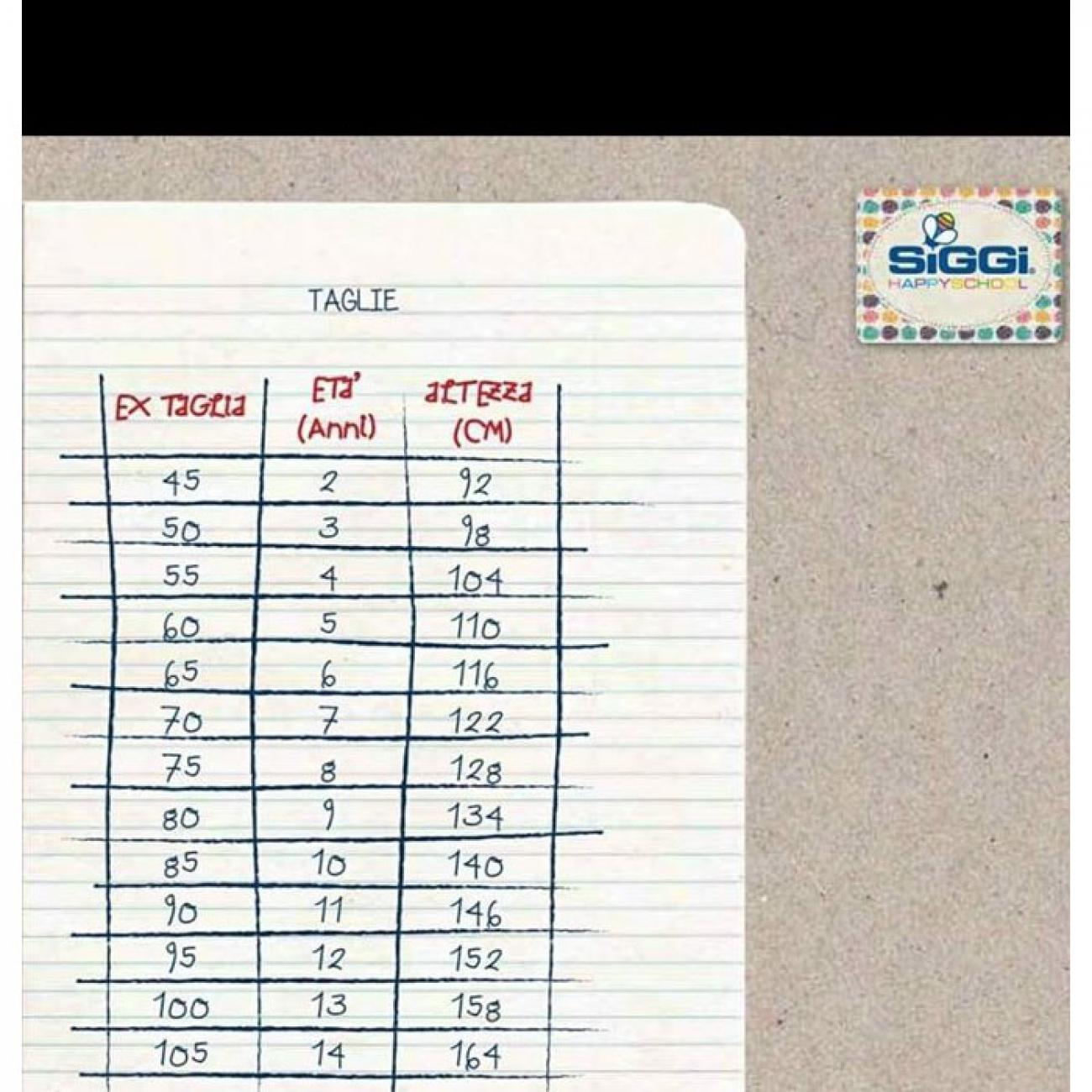 Taglie da 2 anni a 8 anni