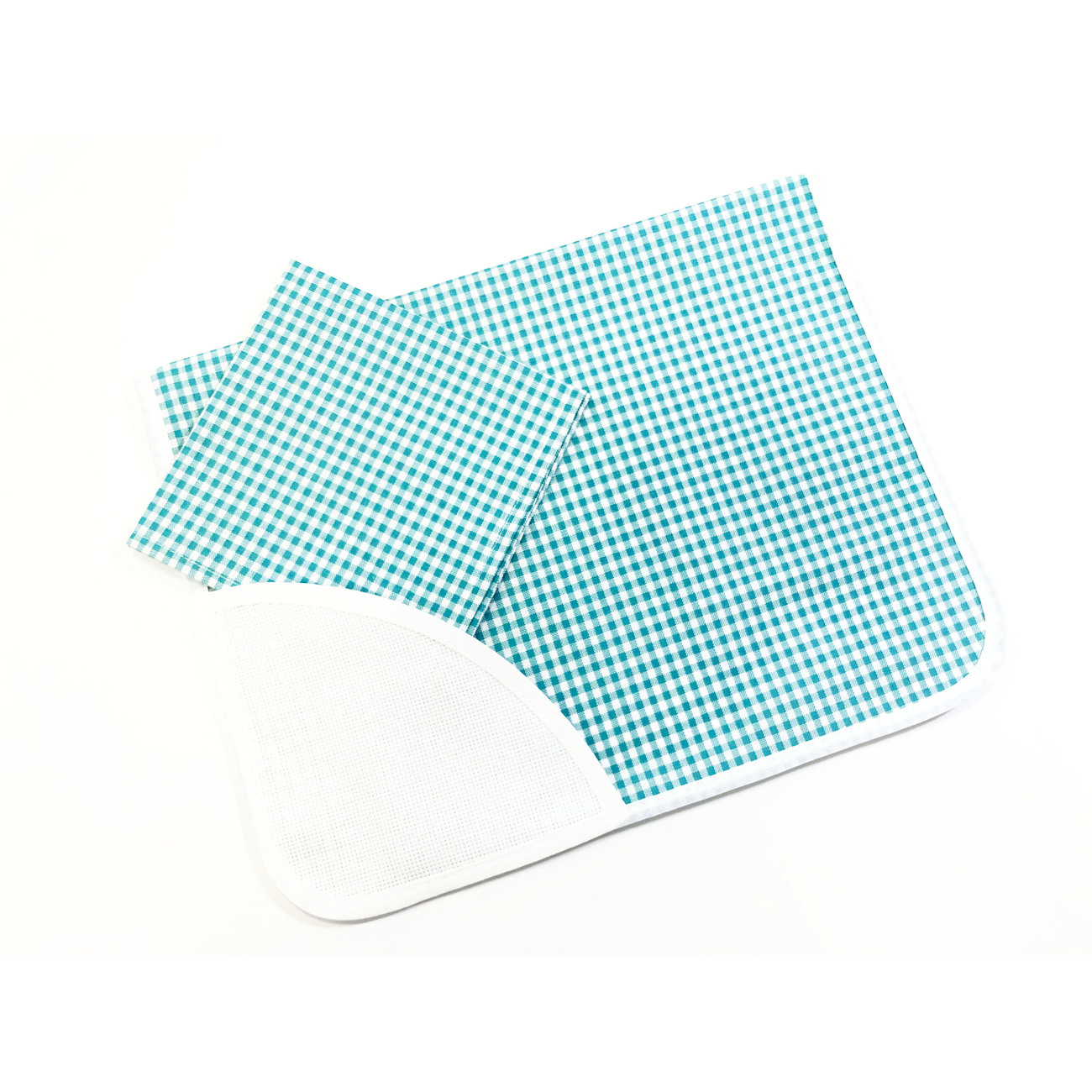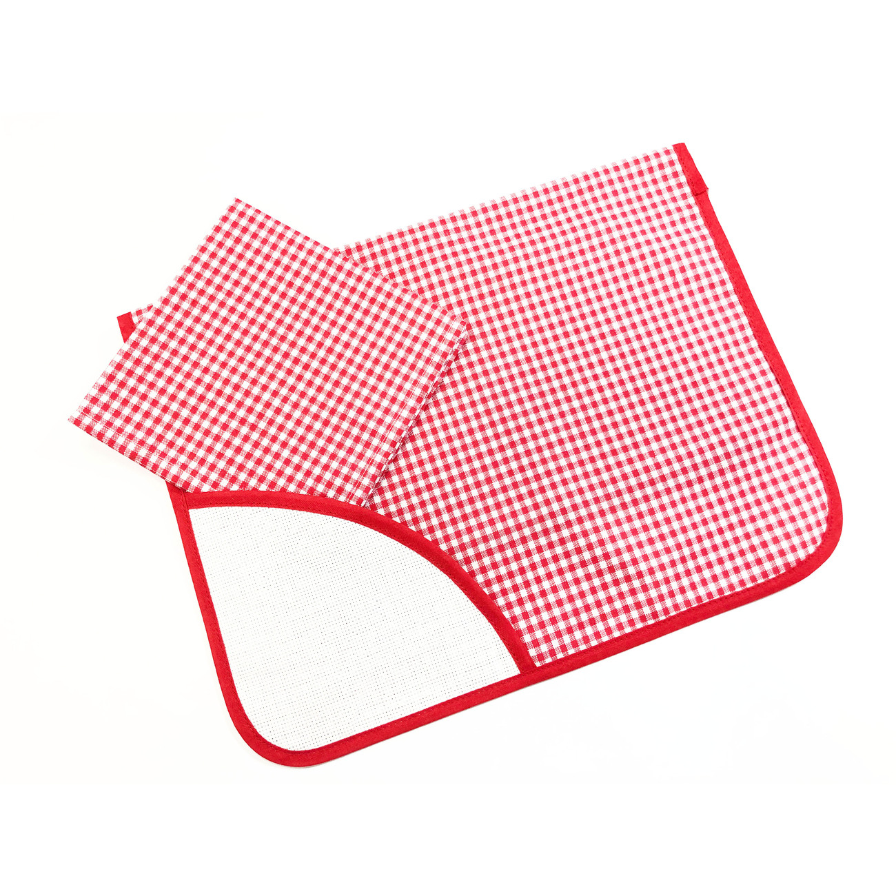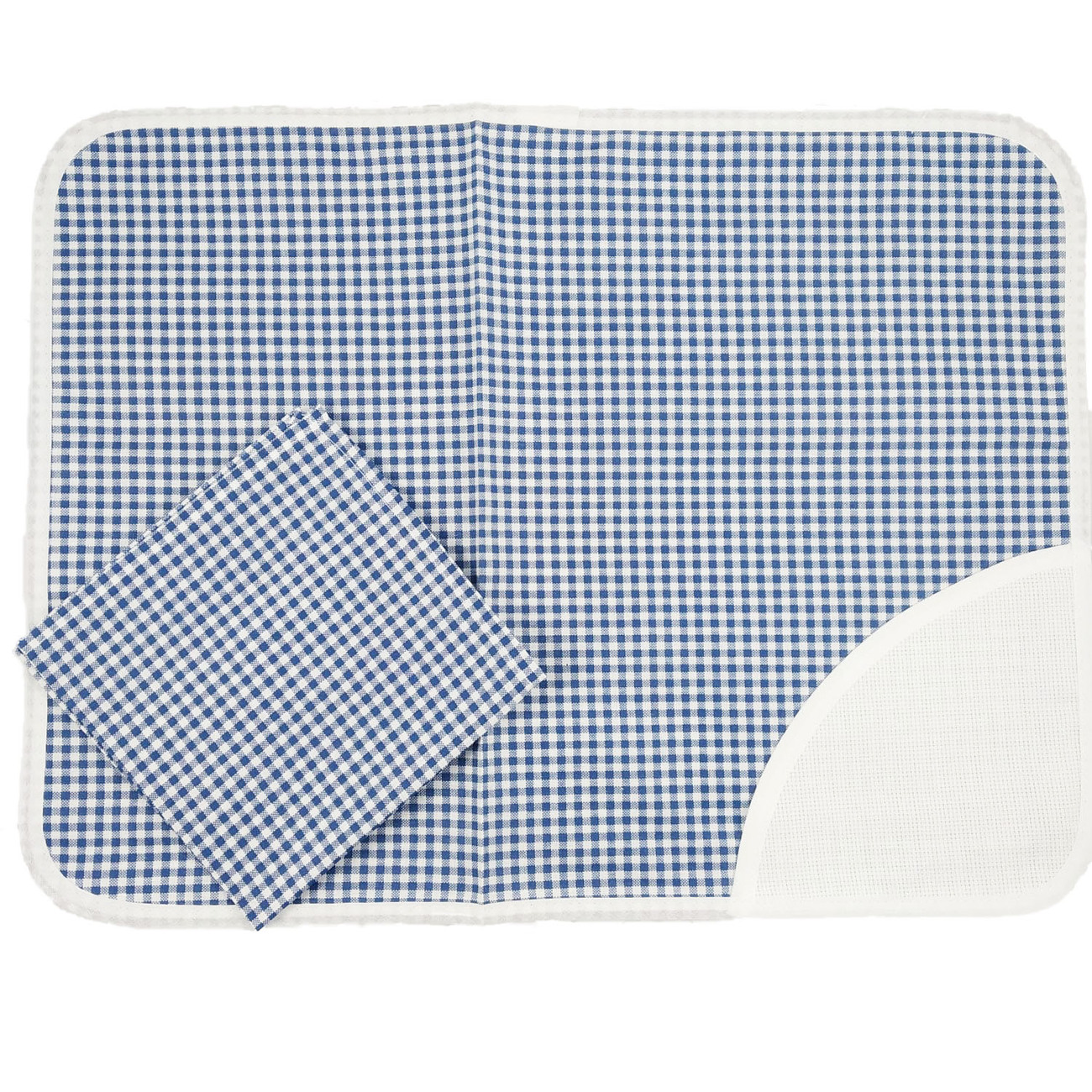 Tovaglietta con angolo in tela ida da ricamare e tovagliolo, in tessuto a quadretti in cotone.