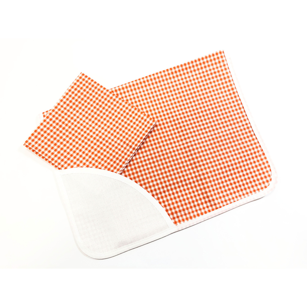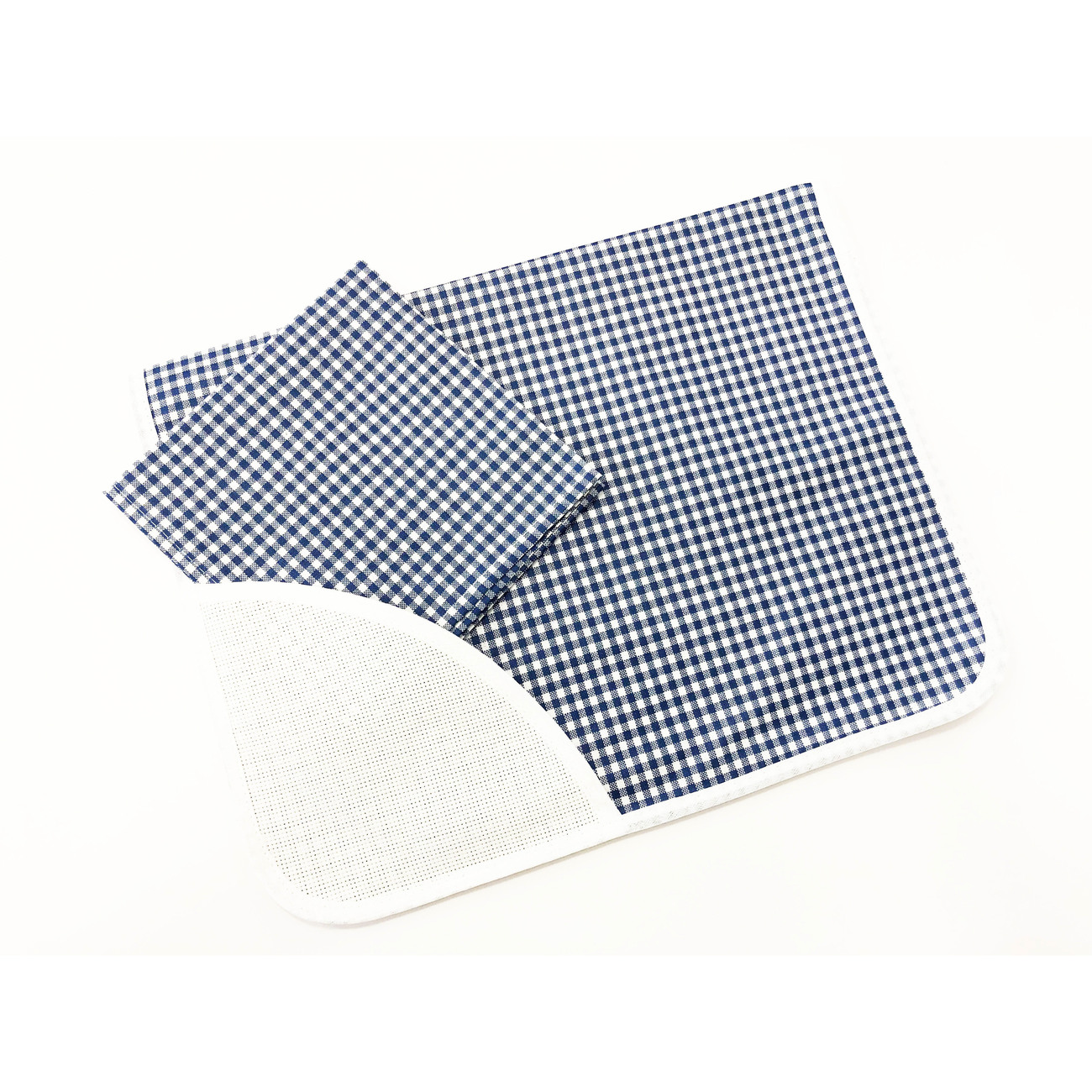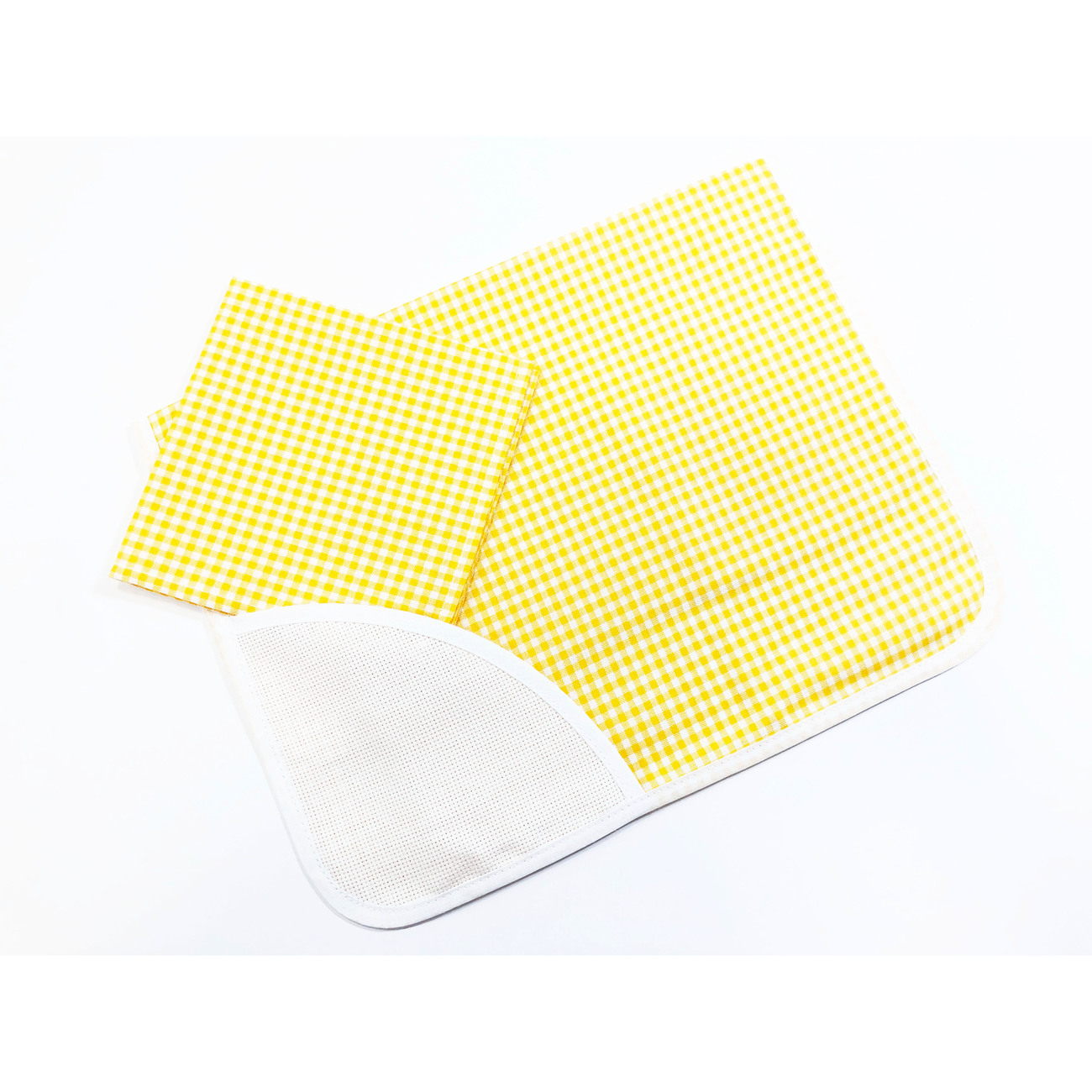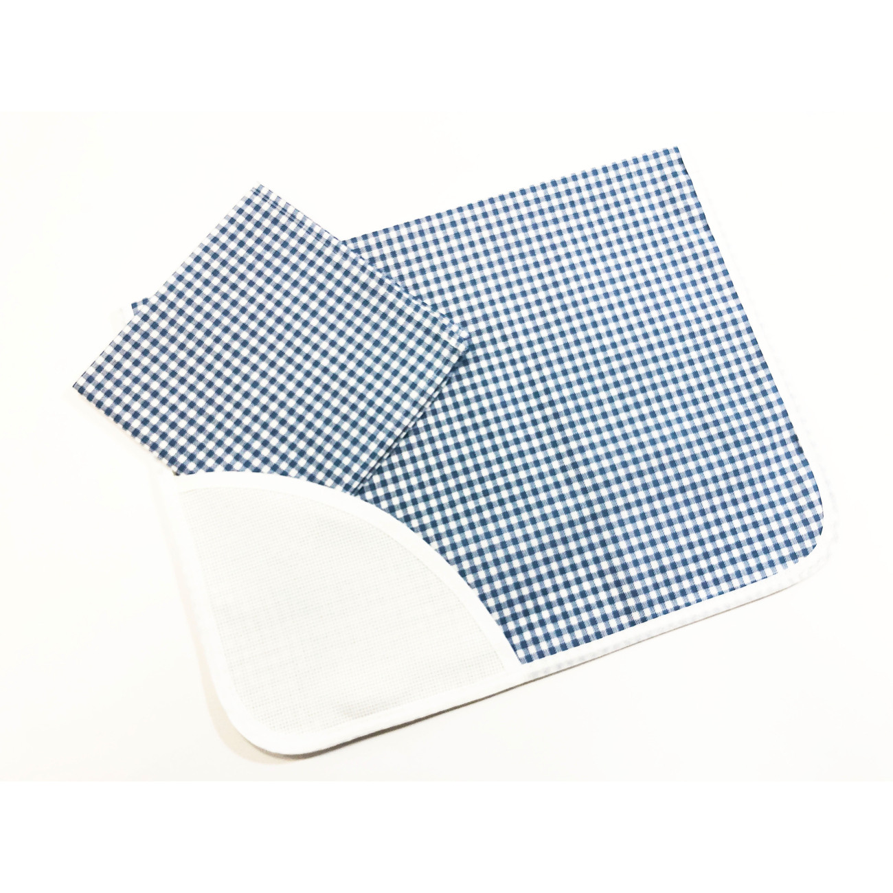 Tovaglietta con angolo in tela ida da ricamare e tovagliolo, in tessuto a quadretti in cotone.